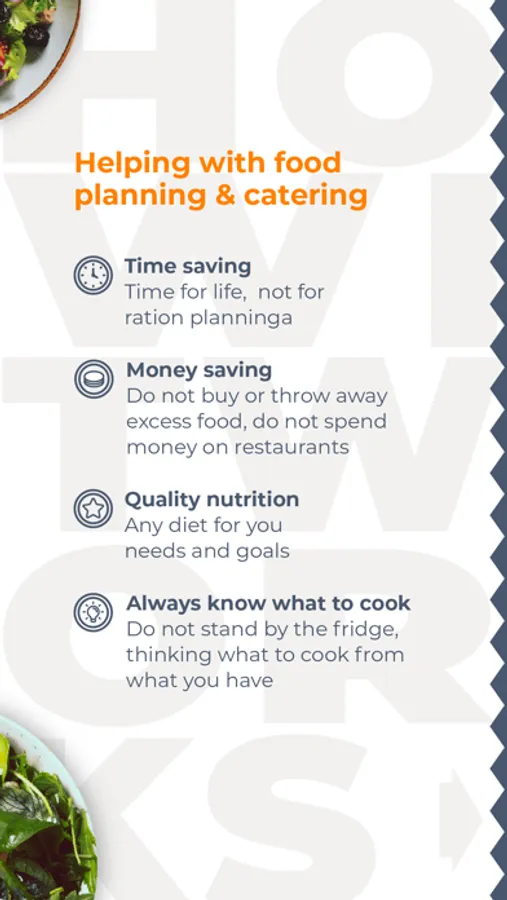 • You want to significantly reduce the cost of food, which is formed due to disorganization, leading to unnecessary shopping and throwing away unused products, spending money on fast food and restaurants.