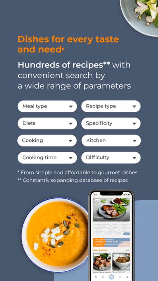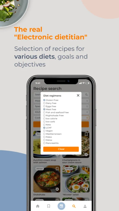 ELECTRONIC DIETISTIC with the ability to select a diet for any taste and need thanks to a wide range of filtering options (recipe type, dietary ration, cooking specifics, cuisine, time, complexity, etc.)