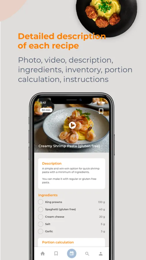 A COOKBOOK with a constantly growing database of various gourmet recipes (for all types of diets and preferences), each of which contains photos, videos and a step-by-step description of the cooking process, a list of necessary kitchen equipment, an exact list of ingredients.