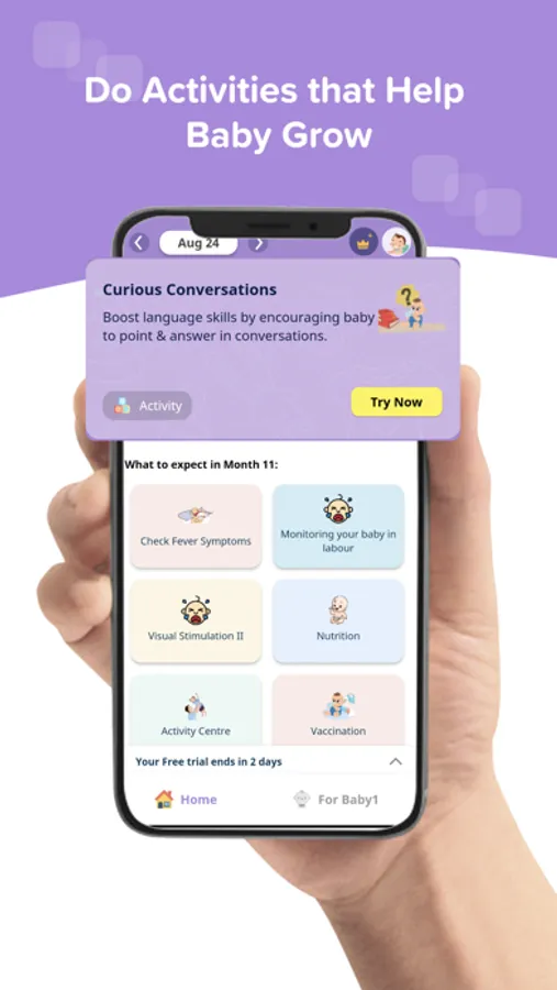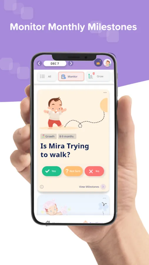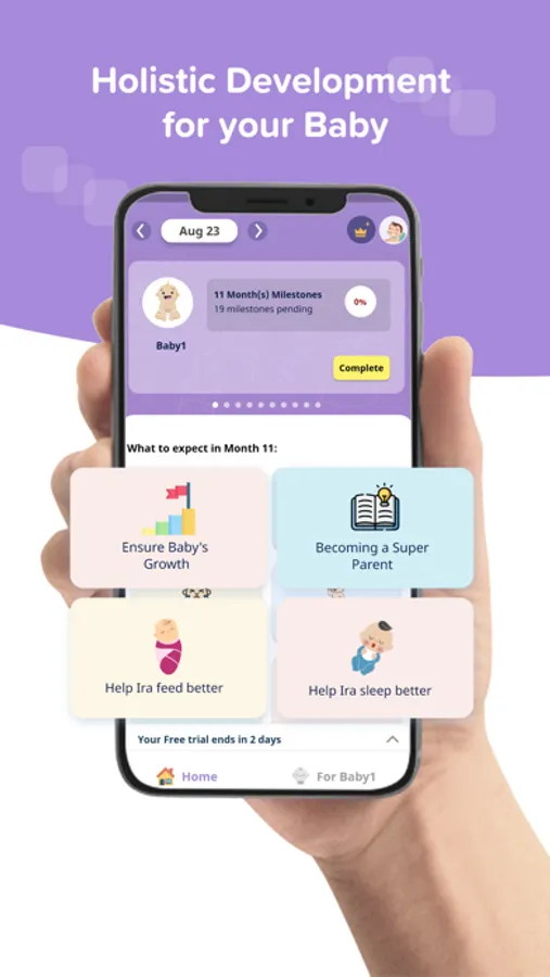 For the first two years of your baby's life, you get daily growth activities curated by doctors, a scientific way to check-in on your baby’s monthly growth milestones, an AI symptom checker bot, and over 2000 articles written by experts that ensure you have everything to give your baby the best possible start in life.
