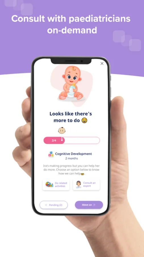 BabyVerse app helps you spot and act upon any growth delays that your child may face. In case any milestone hasn’t been met beyond the appropriate age range, it then suggests relevant activities that are designed to assist the baby get back on track. Our team of delay experts is available for consultations on the app in case additional guidance is needed.