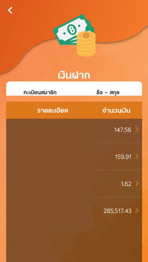 - ยอดคงเหลือเงินฝาก และรายการเคลื่อนไหวของบัญชี