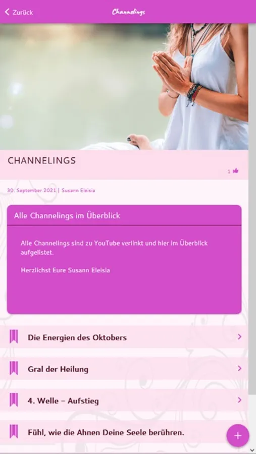 Diese App dient zur Kanalisierung aller Angebote und Internetauftritte des Mediums. Diese App entstand auf Anregung der Community von Susann Eleisia. Hier findet ihr nun Channelings, Essenzen, Webinare, Meditationen und vieles mehr.