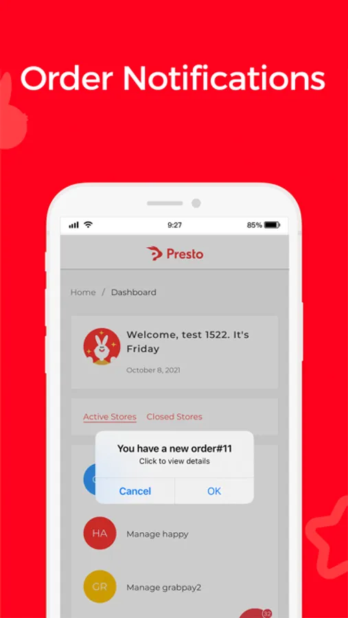 Presto Retailer app provides Retailers with a convenient way to manage their online business anytime, anywhere. It helps to create more opportunities for business growth with its complete integrated features which fully supports the online sales of Retailers daily!