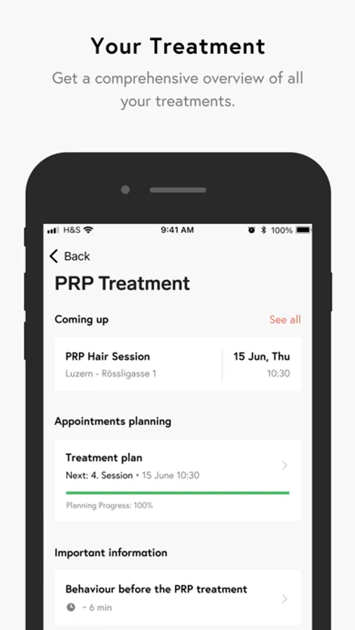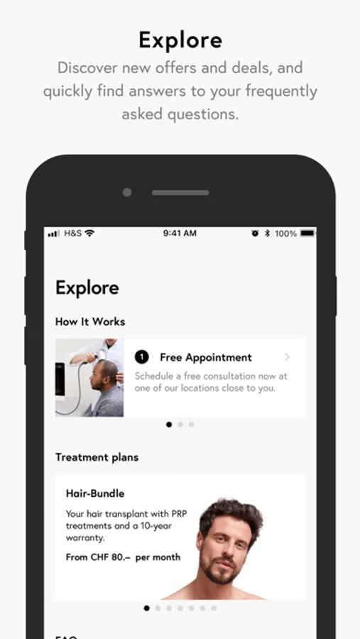 Your HAIR&SKIN app will guide you on your way to thicker and fuller hair as well as younger and more vital skin - from the first free consultation to the follow-up checks. You can use the app as soon as you have signed your contract with us.