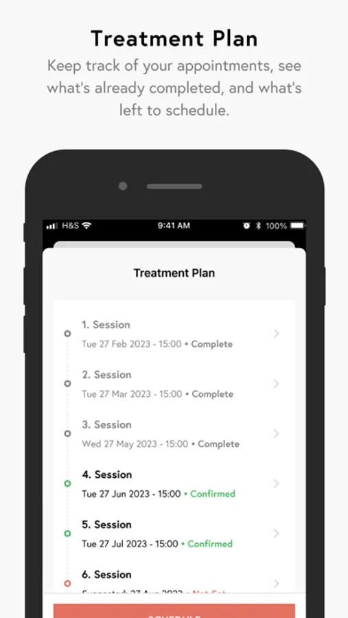 Check your treatment plan, book appointments and track your progress - all in one place.