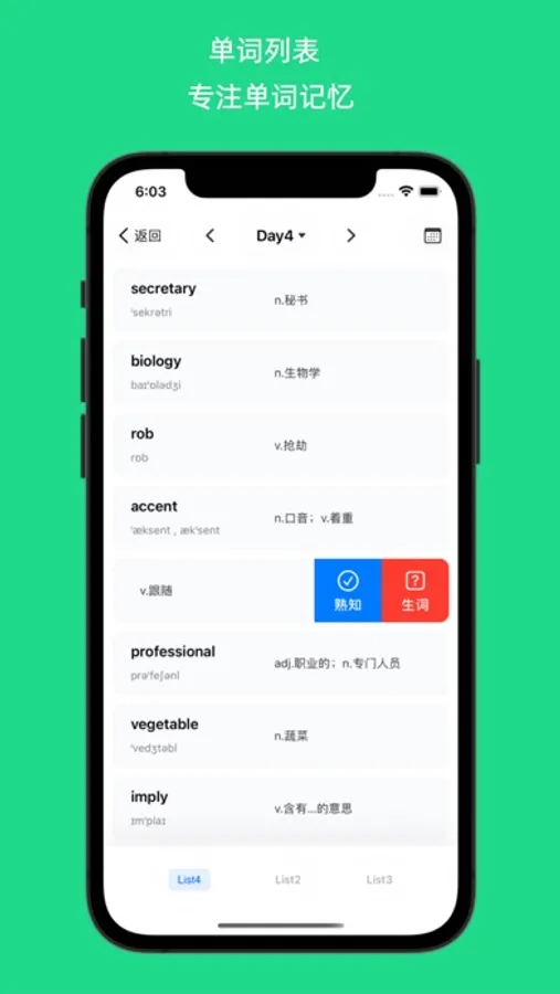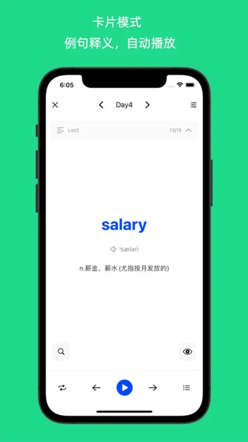 * 「听写模式」:可重复可间隔可循环可自动,英汉双语音频播放;