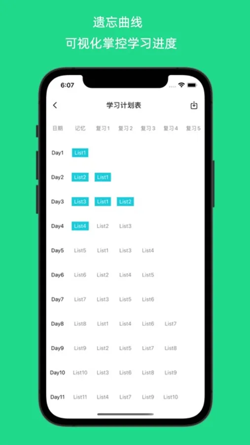 * 「学习计划表」:根据艾宾浩斯记忆规律曲线,持续记忆和不断复习;