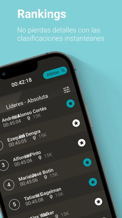 Además, podrás ver de forma rápida cualquier clasificación al instante: por categorías, los primeros corredores por tramo y el último punto alcanzado de los participantes a los que sigas