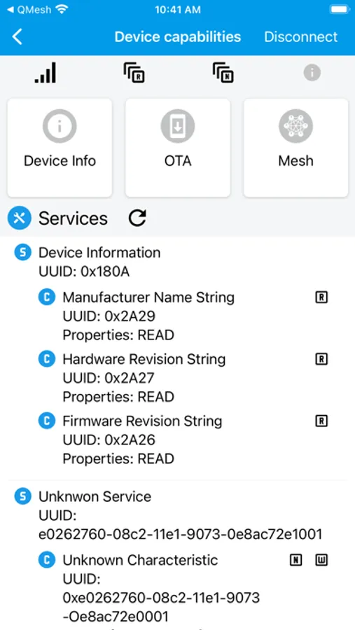 -Explore your device services and characteristics, enable/disable notifications and indications, read from and write to the characteristics (depending on the features supported by your device individually).