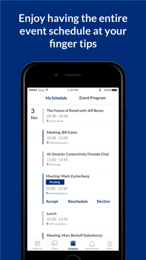 **Event Agenda:** Contains the entire event agenda with powerful features and customizations.