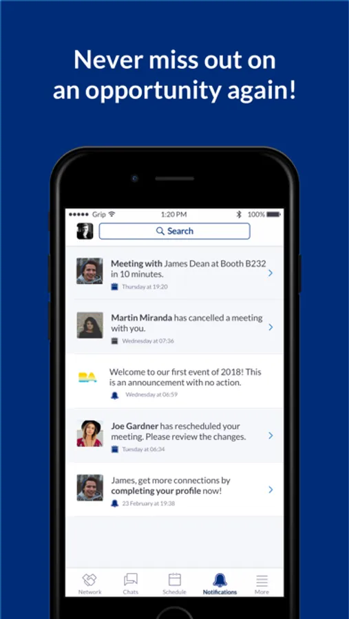 **Calendar Integration:** Meetings are automatically synced with native calendars (iCal, Outlook, Google Calendar etc.)