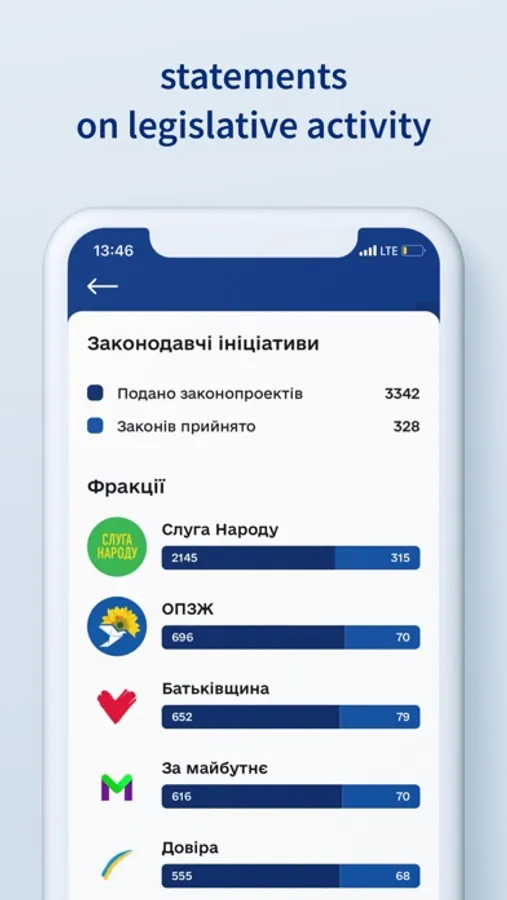 With this tool, you can always get the necessary information about the results of voting, submitted and adopted laws, and much more.