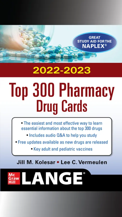 Perfect for NAPLEX and course review, McGraw Hill's 2022-2023 Top 300 Pharmacy Drug Cards is the most concise and up-to-date resource for building a solid knowledge base of the most commonly used drugs.