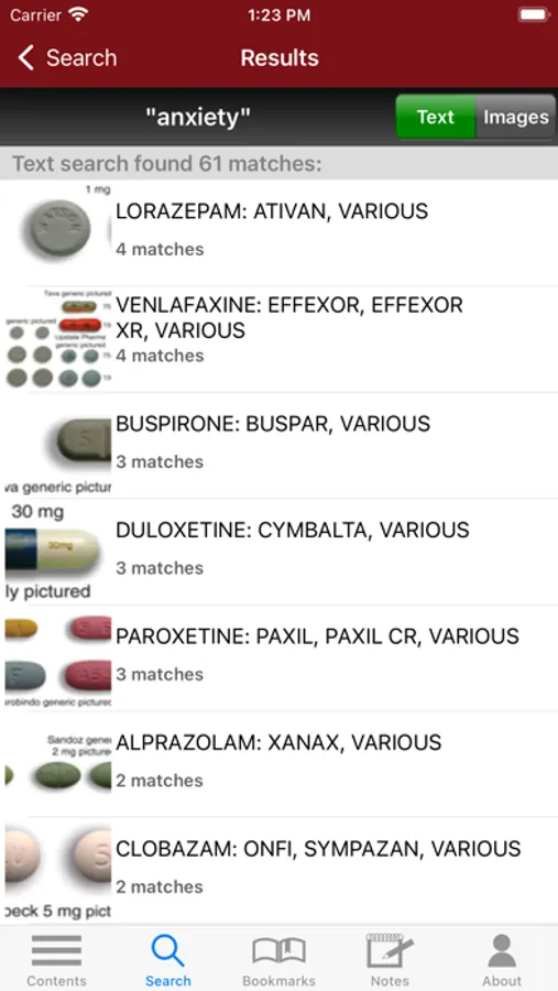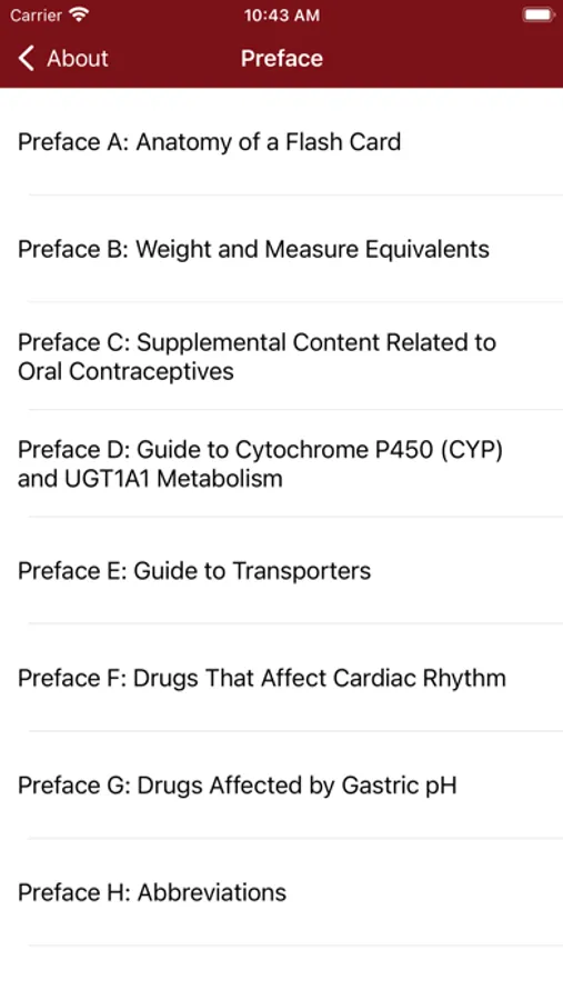 Each card also features a photograph as well as important drug information. You can also search the entire text with our lightning fast search tool. The search tool shows you suggested words as you type so it is quick and helps with spelling issues. You can also add notes to each drug card, as well as bookmark drug cards as Know and Don't Know to help with studying. You also have the ability to change the text size for easier reading.