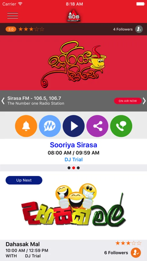 Sirasa FM Mobile app offers a variety of features to empower you to have a wider engagement with the radio station than ever before. Unlike in the conventional radio experience, where you only get to listen, Sirasa FM Mobile app offers you the visual radio features with more interactivity with the programs and DJs you wish to follow. Sirasa FM Mobile app is a property of MBC Networks.