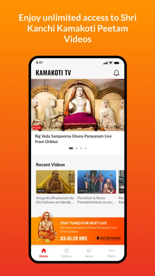 This app contains videos including Anugraha bhashans (speeches) of Pujya Shankaracharya Swamigal of Shri Kanchi Kamakoti Peetam, visesha pujas, News and notifications from shrimatam with the objective of reaching programmes and events from Shrimatam to devotees across the world.