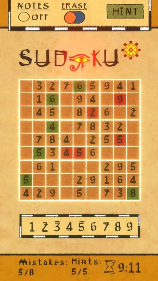 Scarab Sudoku is a story based sudoku game. There are 10 levels, which are increasingly more difficult. You will need to collect gems from each of the levels which will be the key to open the final door.