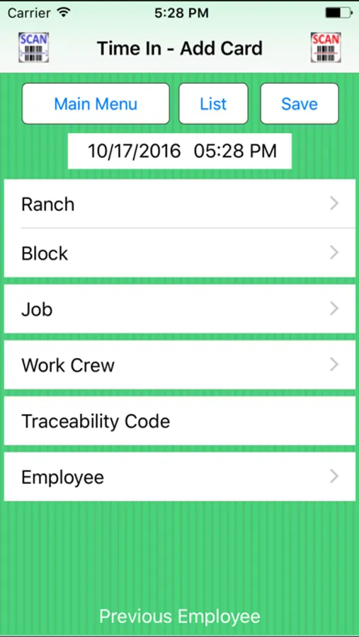 PET Personal collects payroll information in the field for an individual employee. It records start of work, end of work and pieces. The data includes field, job, crew, and GPS location. It can be collected for individuals. Supports bar code scanning (with an external scanner) and manual input. Supports Printing receipts with the details of the work done for Employees.