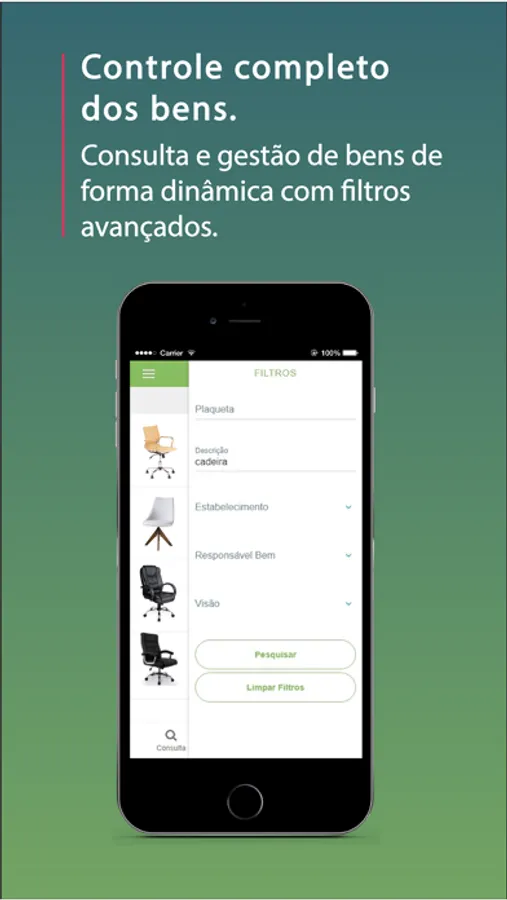 - Consultas de Bens (bens cadastrados na empresa, filtros de busca, descrição dos bens, etc);