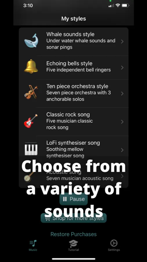 —Instrument styles. Other styles create the music automatically based on the distance to the objects visible ahead or the shape of the room. The closer the object, the higher the notes. There are several different musical scales and effects like reverb being used.