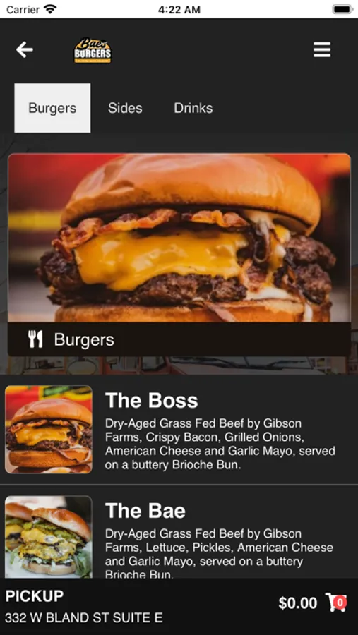 Use our convenient app for ordering your favorite food from Bae's Burgers right from your phone! Check our current location and menu items for the day. Earn Loyalty Points with each purchase good for discounts! You'll also receive coupon codes periodically that can be used at checkout.