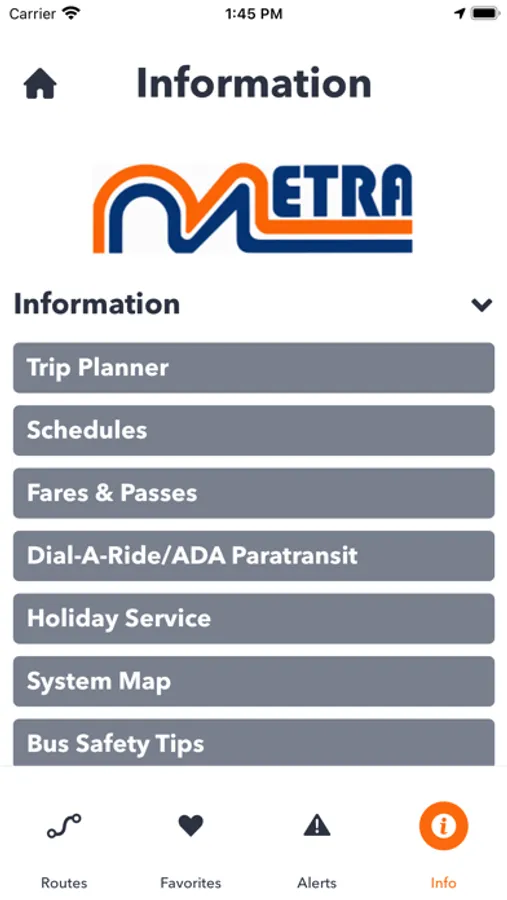 This app allows you to locate in real-time the fixed route buses of METRA Transit System in Columbus, Georgia. Want to know how to get from point “A” to point “B” using in Columbus, Georgia using METRA Transit System? This app also allows you to plan your trip out in advance using a trip planner.