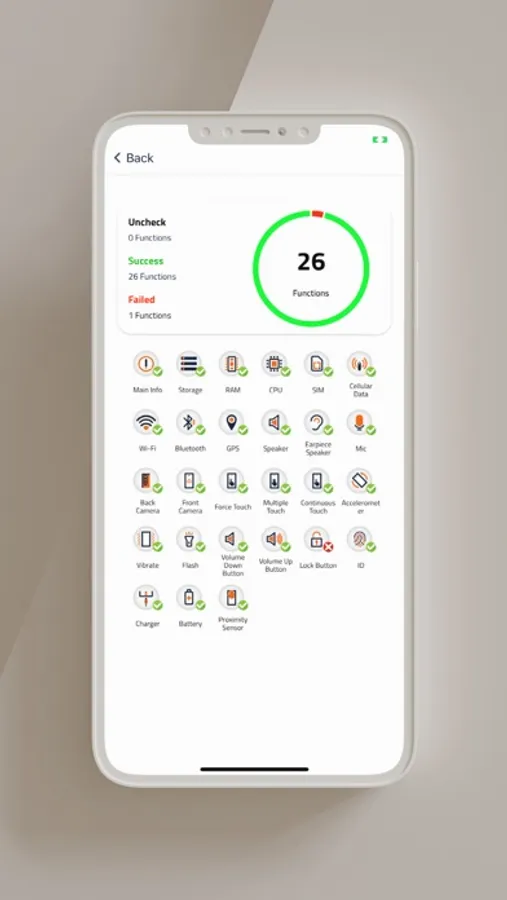 Under this section, your phone’s performance is checked and tested. This includes checking the following: