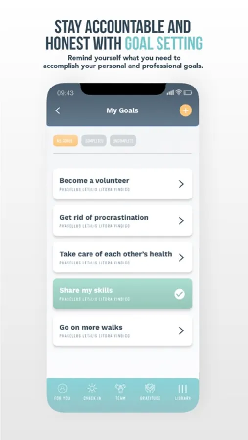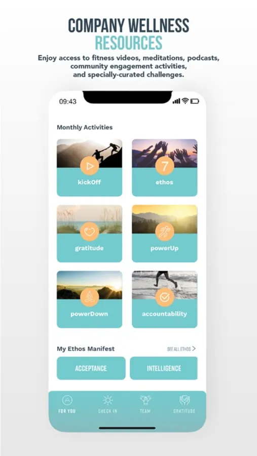 With Daily Check-Ins and the Goal Board, you can stay on track with your overall wellness initiatives. The Gratitude Board will help to remind you to be grateful for everything around you and keep you grounded. The Power•Up videos are for when you’re feeling fired up and energetic. The Power•Down videos are for when you need to reset and reconnect. The ever-growing audio content library is for when you only have time to listen to things like wellness tips, mindfulness practices, meditations, and more.