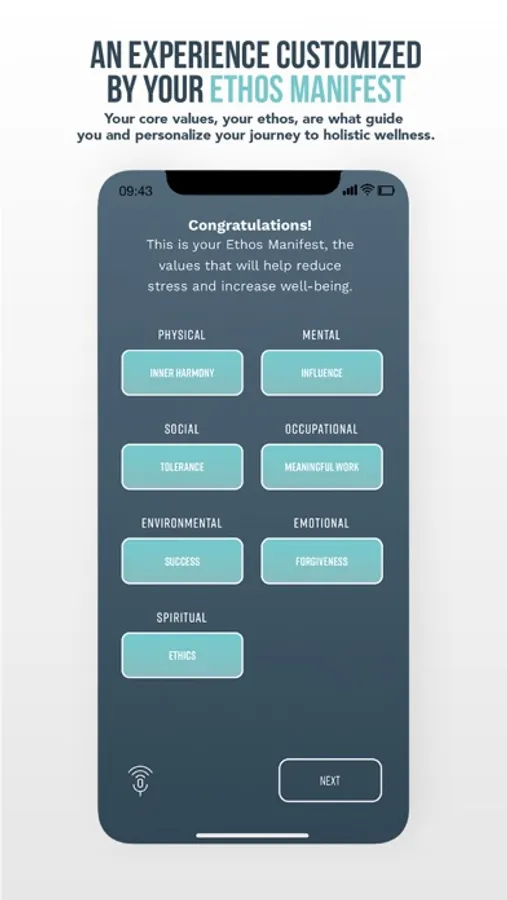 By using your own personal ethos manifest as a guide, this fitness and wellness program is tailored to you and your needs in all aspects of your life. Your ethos manifest is the group of core values that fit into the 7 Dimensions of Life: