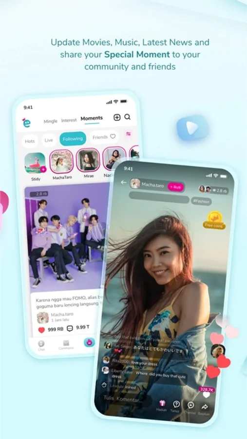 Di eDOT Anda dapat berinteraksi dengan kerabat Anda, menikmati konten, mengunggah konten dan juga dapat bertransaksi melalui fitur e-commerce kami.