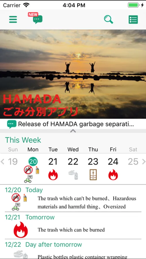 You can immediately check the garbage collection dates in three patterns, today, tomorrow, weekly, and monthly, on one screen.