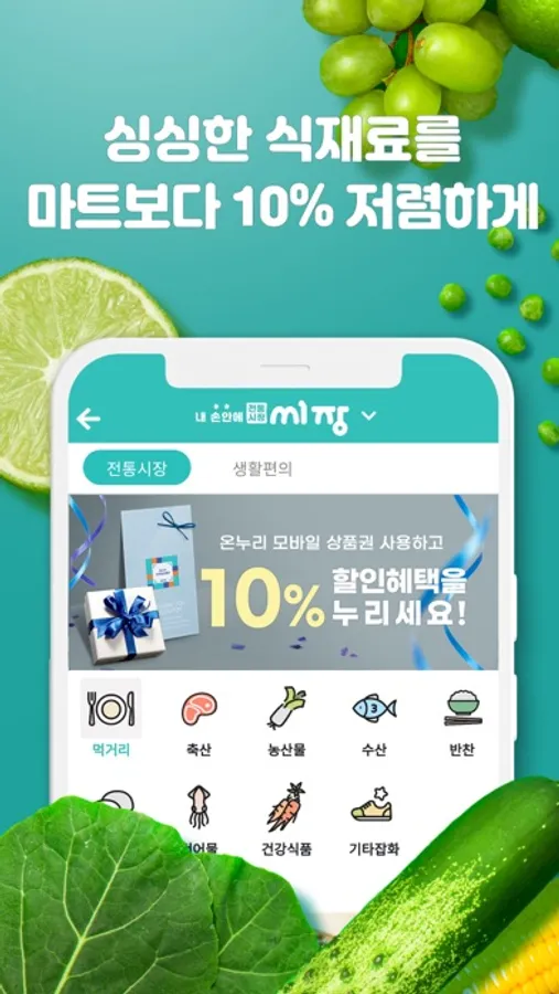 전통시장의 상품구매, 음식배달, 생활편의, 쇼핑몰, 이벤트 등 다양한 기능을 경험해 보세요.