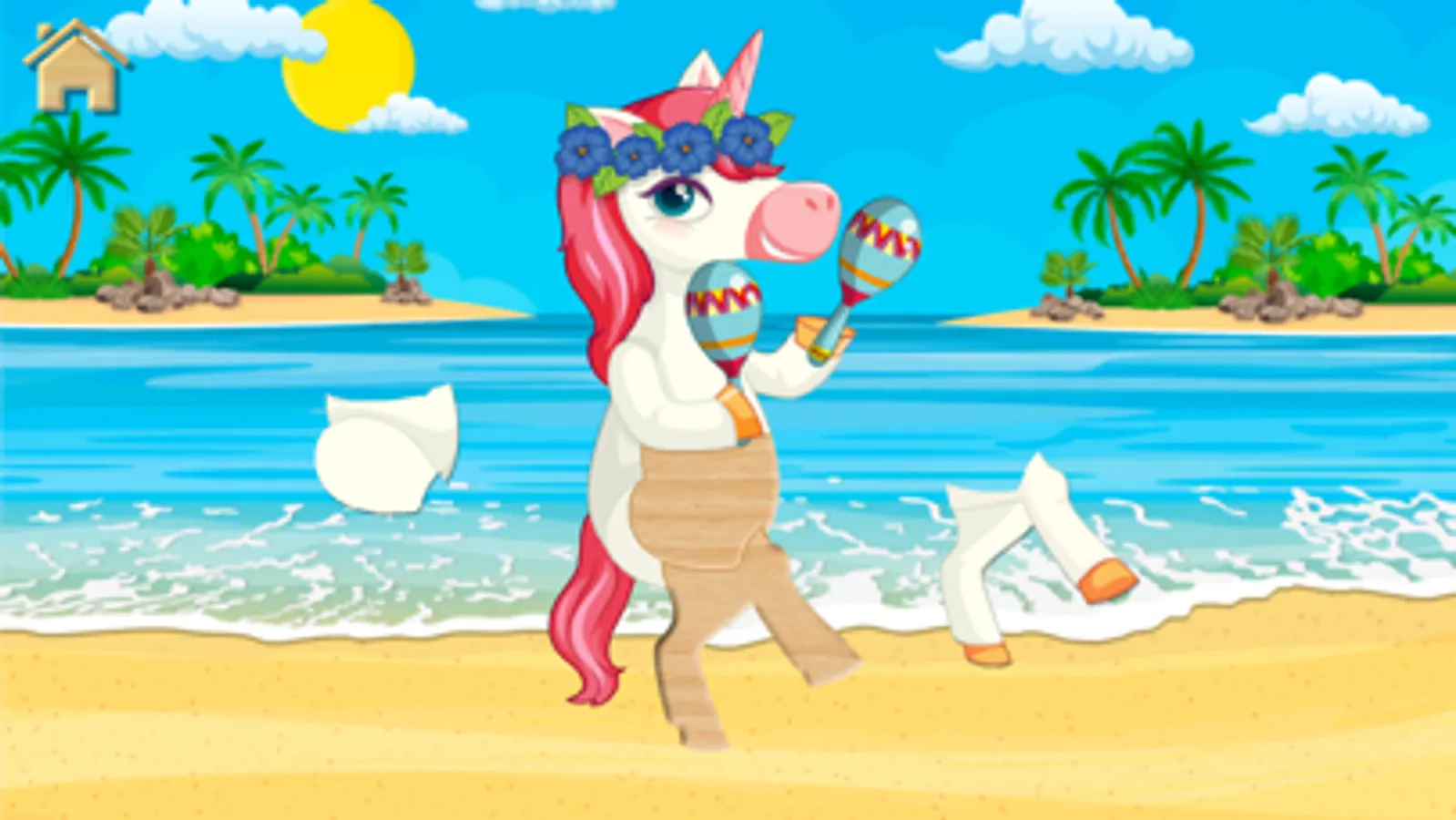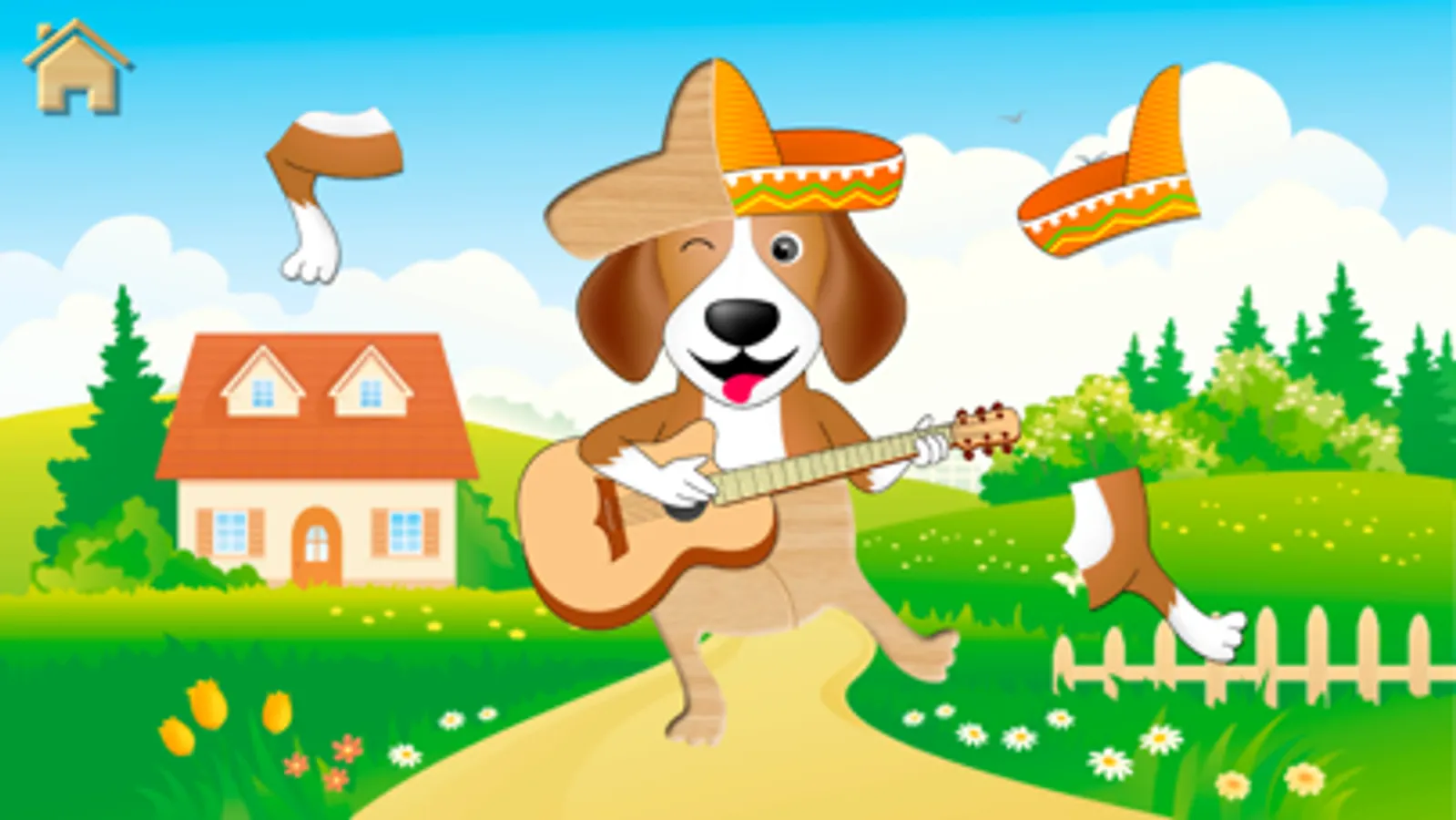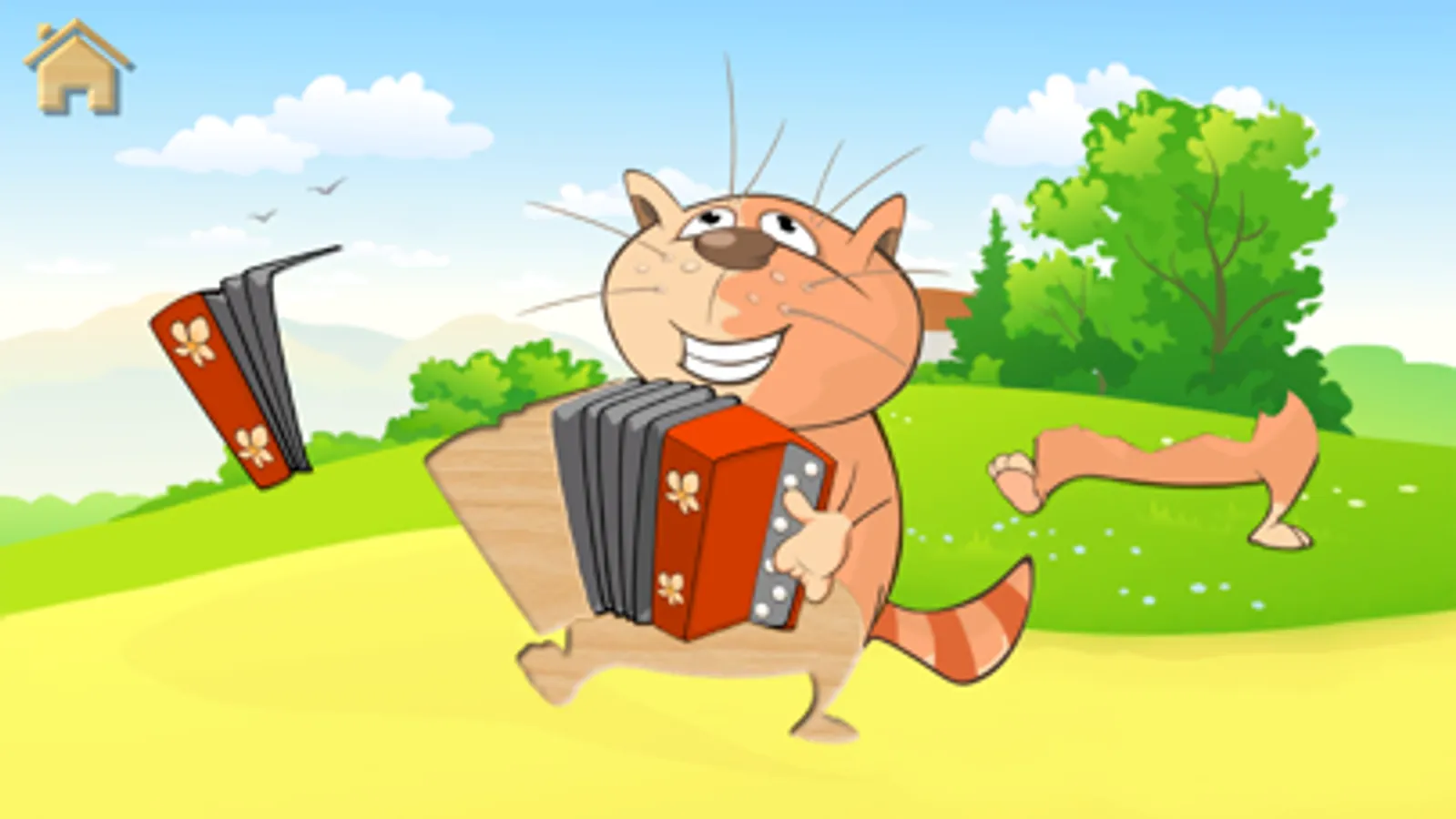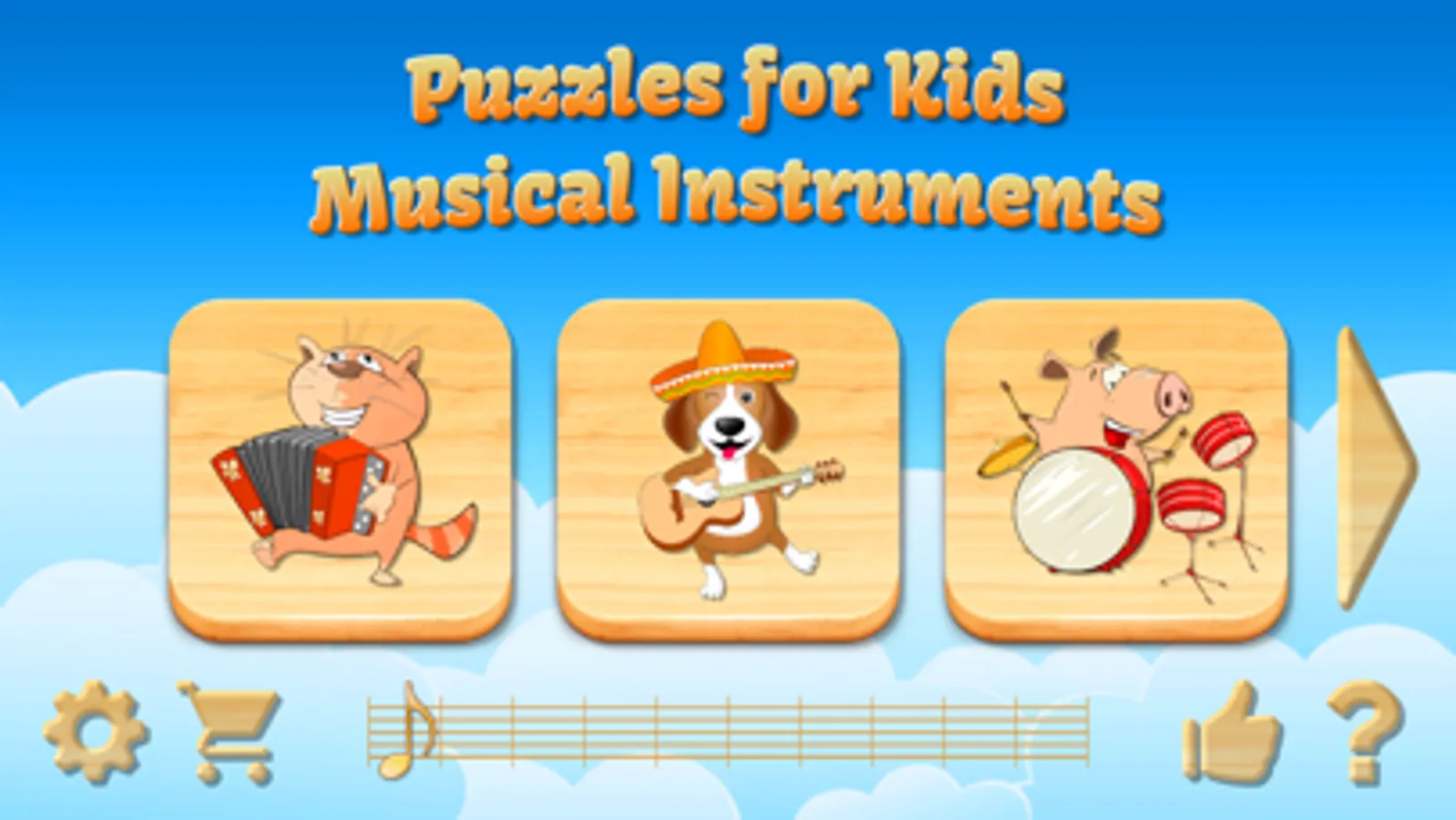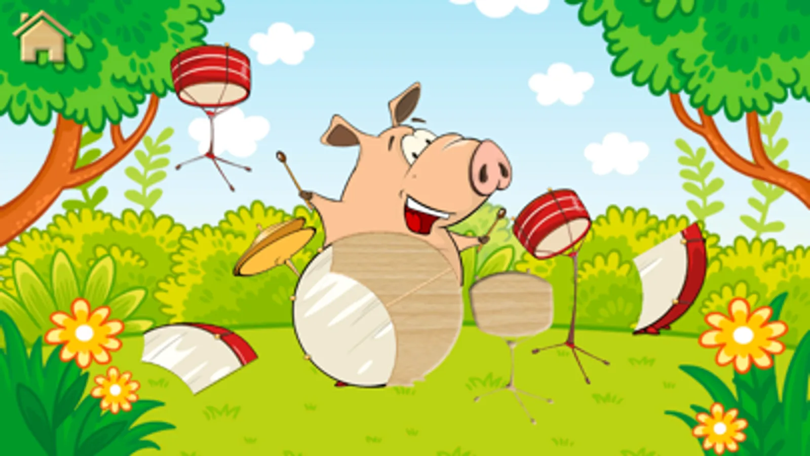 "Music Puzzles for Kids" is an educational jigsaw puzzle game for toddlers in which your little one will learn about musical instruments, find out their names and listen to cartoon animals playing fun music.