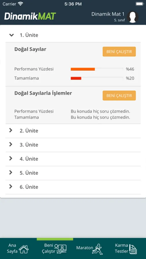• Yıl boyunca çalıştığı konulardan sırayla soru çözerek zorluk derecelerine göre puan toplayabildiği “Maraton” özelliğiyle ne kadar yol aldığını, daha ne kadar yolu kaldığını takip edebilir.