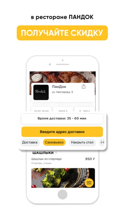 Заказывайте в нашем приложении доставку вкусного и всегда свежего шашлыка по всему городу. Мясо только с мангала!
