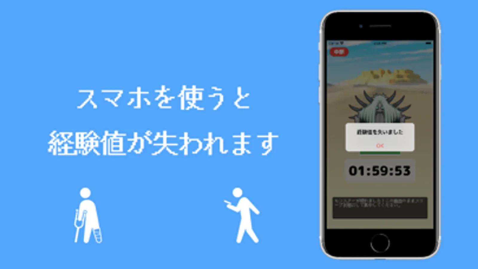 3.タイマーが開始されるのでその画面のままスマホをスリープ状態にし、作業に集中してください。途中でホームに戻ったり、別のアプリを使ったりすると経験値は得られません。