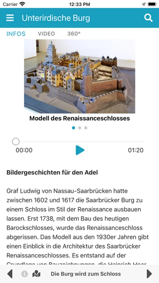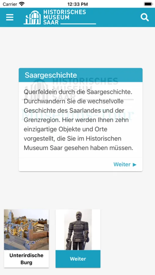 Auf 2700 m² Ausstellungsfläche mit fünf Abteilungen und zwei Ausgrabungsbereichen verliert man schnell mal den Überblick. Besonders, wenn diese größtenteils unterirdisch und weit verzweigt in den Kellergewölben eines Schlosses liegen. Die neue App des Historischen Museums Saar schafft Abhilfe. Mit deren Highlight-Touren zur Saargeschichte und den Ausgrabungsbereichen der Unterirdischen Burg, haben Besucherinnen und Besucher alle wichtigen Stationen und Highlight-Objekte im Blick. Zu jeder Station gibt es spannende Zusatzinformationen in Form von Videos oder Audiodateien. Einige Objekte können in den Ausstellungsbereichen mittels 3D-Scan quasi an ihrem Fundort von allen Seiten sowie aus der Nähe betrachtet werden. Erkunden Sie mit diesem persönlichen Museumsguide das Historische Museum Saar auf eigene Faust und in individueller Reihenfolge. Eine integrierte Karte erleichtert zudem die Orientierung und färbt die bereits besuchten Räume ein. So behalten Sie zu jeder Zeit einen Überblick über Ihre persönliche Museumstour.