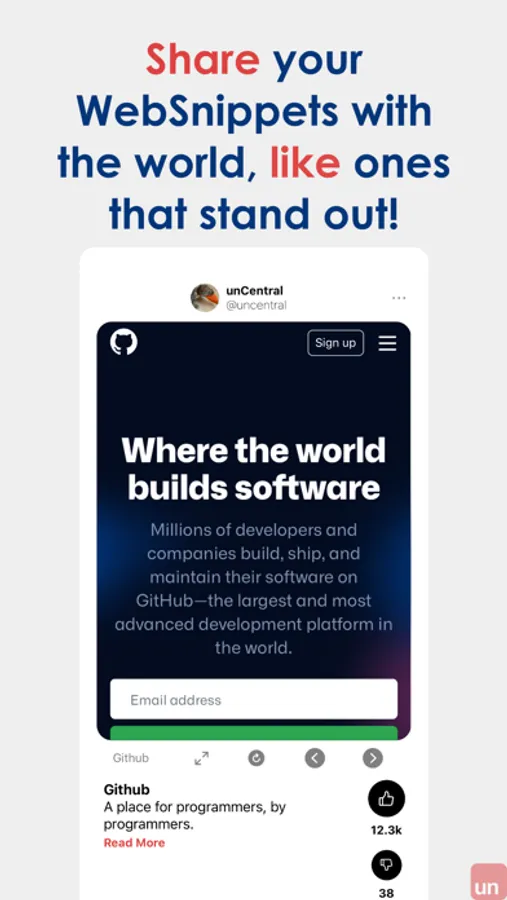 This format of social media allows content creators to directly share their websites, and link to their merch stores. It also enables news outlets to directly share news to readers; but most importantly, 'unCentral WebSnippets' allows you to access any and all the content that you love on the internet, right at your fingertips - packaged in a social media app :)