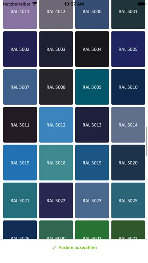 - Standard- und RAL-Farbpalette mit Vollbildanzeige, um die Farbauswahl zu vereinfachen