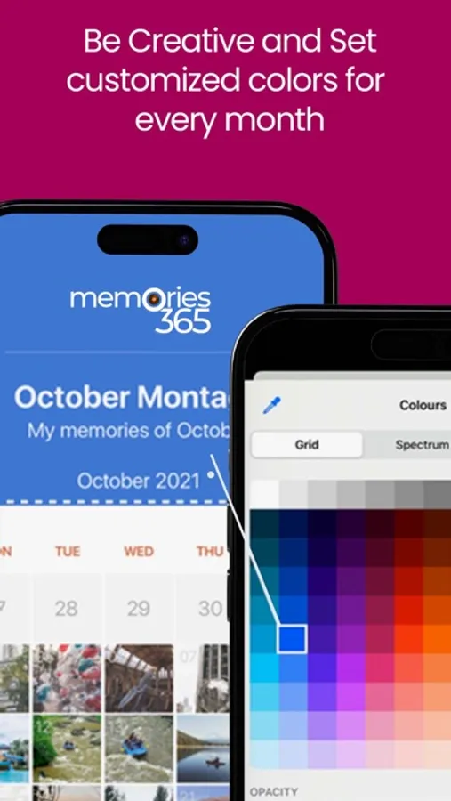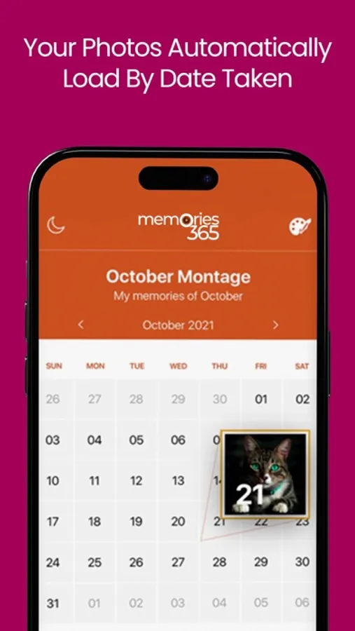 Auto-Populate the Calendar with Your Photos – As soon as you open the app, memories365 quickly auto-populates each day of the month by selecting a photo taken on that date from your camera roll. This way, your memories get preserved, day by day, in a matter of a few seconds! If you are not happy with the auto-selected photo, you can change it manually.