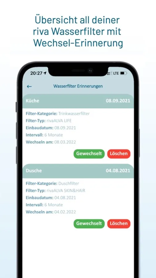 Riva erinnert dich über den gesamten Tag dran genügend Trinkwasser zu dir zu nehmen. Dies hilft dir dabei deine Leistungsfähigkeit zu erhöhen und vital zu bleiben.