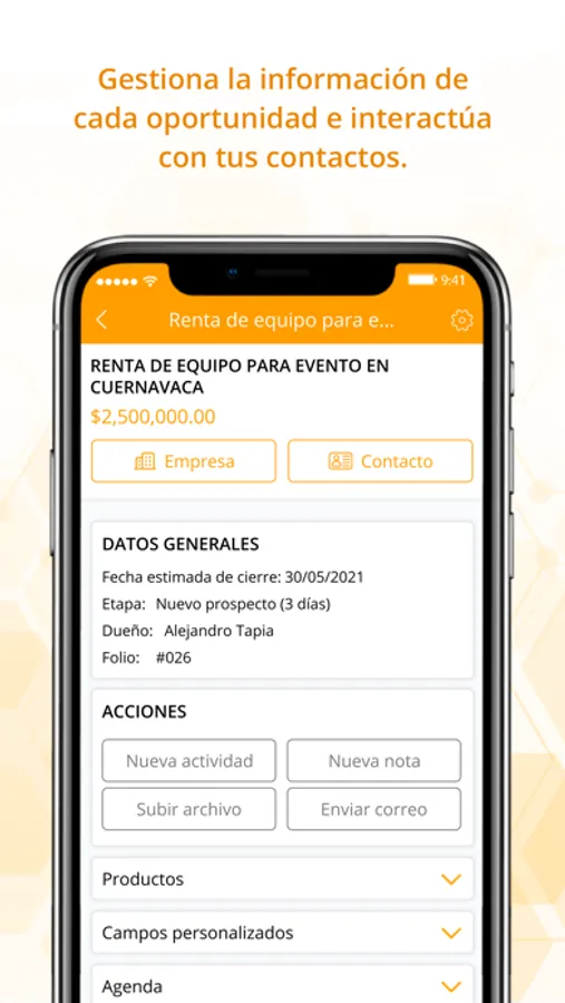 Es la herramienta que te ayuda a organizar la comunicación con tus clientes y prospectos. Podrás sincronizar tu agenda y tu bandeja de correos, archivar documentos, dar seguimiento a tus negociaciones y mucho más.
