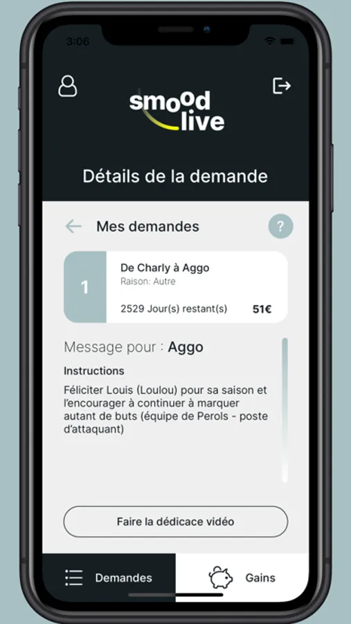 - Consulter ses demandes de dédicaces vidéo avec alertes en notifications push
