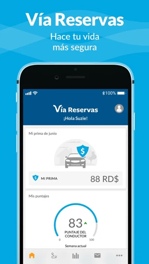 Vía Reservas es una app, que mantiene un registro de tus viajes de los cuales realiza una evaluación con la que luego te proporcionara una puntuación basada en tu conducta al volante. La evaluación se realiza tomando a consideración, las distracciones, la velocidad y el recorrido total.