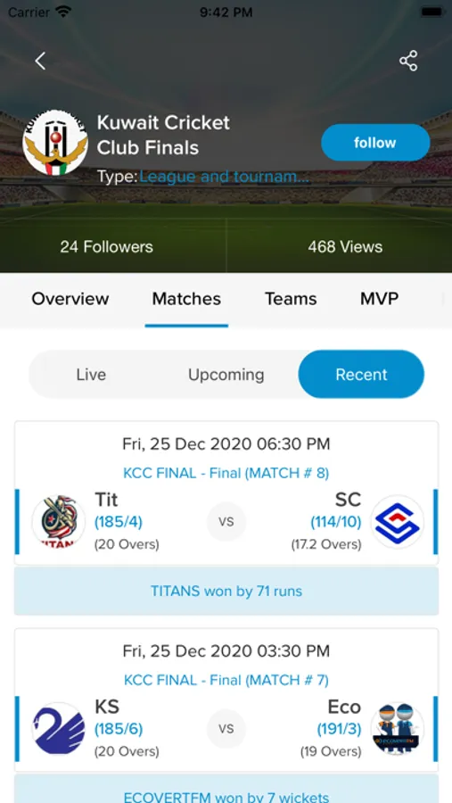KCC app gives access to cutting-edge live scoring technology to enhance broadcasts with affordable real-time match data with professional overlays over the top of the live stream videos which reduces the cost and makes it possible to deliver an international broadcast experience to all Kuwait Cricket fans and followers.