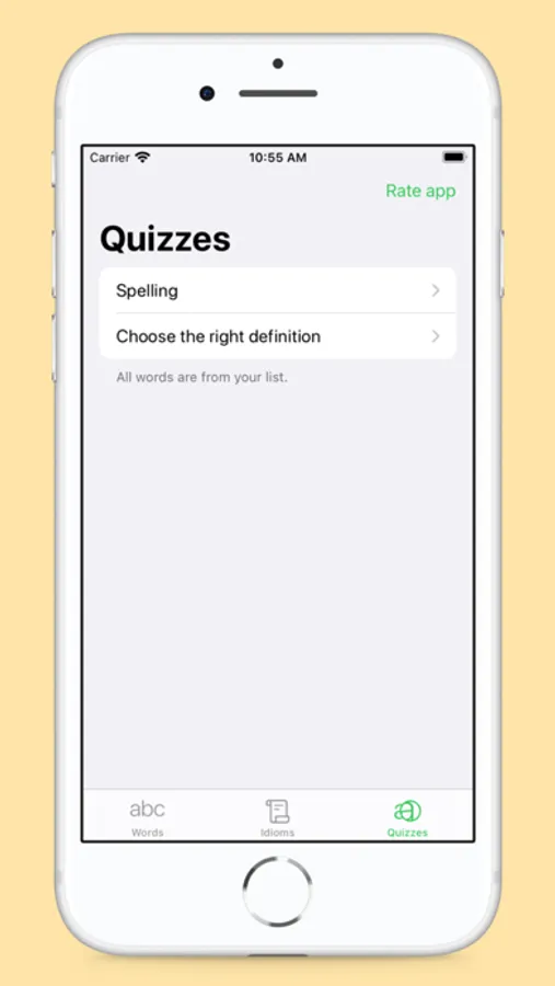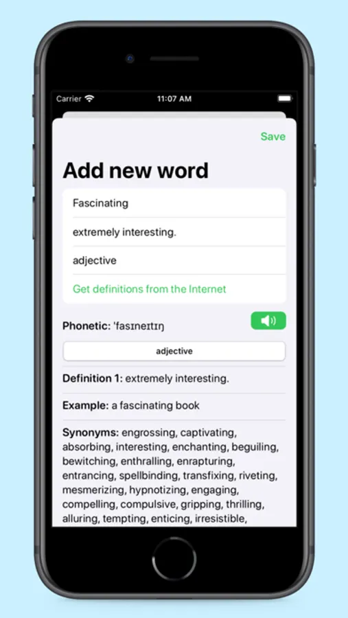 * Word Mastery Games: Challenge yourself with two exciting word games. Guess a word by its definition or choose the correct definition from three options, all using your own word lists.