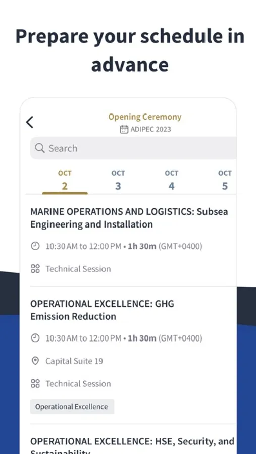 The ADIPEC app is the official platform for attendees to start their ADIPEC experience. The platform includes features such as one-to-one networking, a place to watch content from the show including onsite interviews and on-demand sessions, and is also our dedicated event app with exhibitor listings, conference programme, the floorplan and tools to make the most of attending.