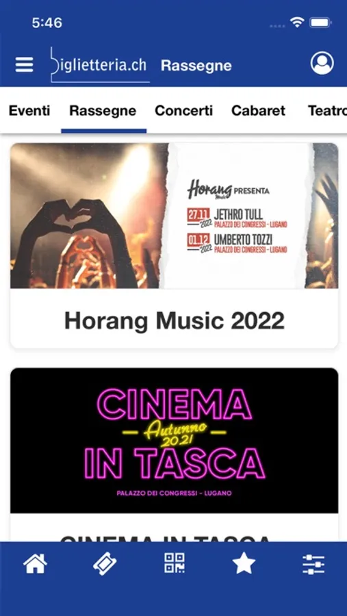 Nell'app Biglietteria trovi tutti gli eventi e le rassegne presenti su biglietteria.ch