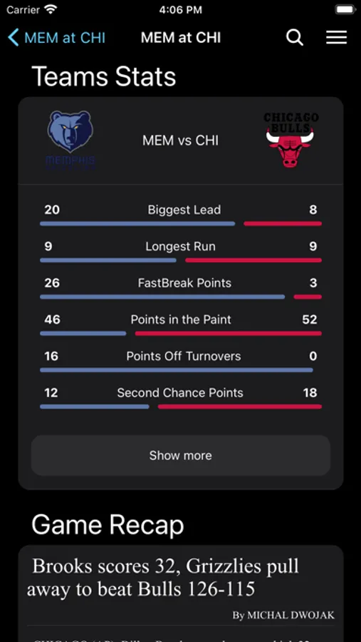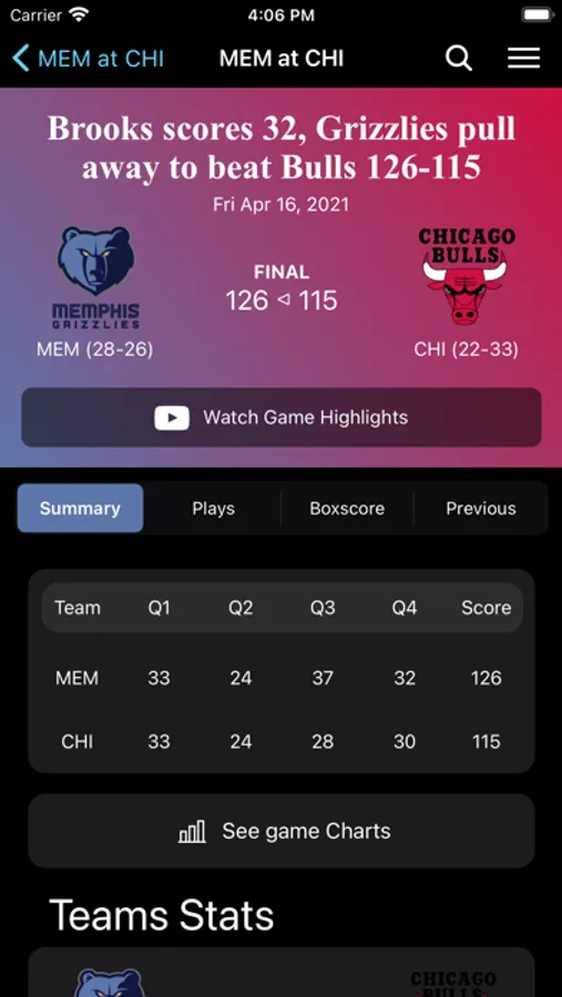 - See live game stats, play by play and boxscore, all updating in real-time